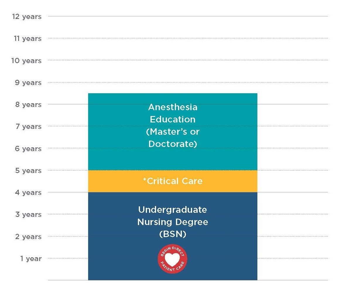 *With an average of 4.5 years of critical care experience, CRNAs are the only anesthesia professionals who START their anesthesia education knowing how to manage critical events. (NOTE: They are required to have 1 year of experience for admission to a program.)
